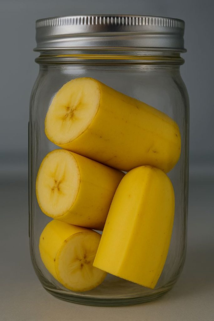 Ji supjaustė bananus dalimis, žievelės nepašalino, o gabalėlius sudėjo į stiklainį ir laikė šaldytuve.